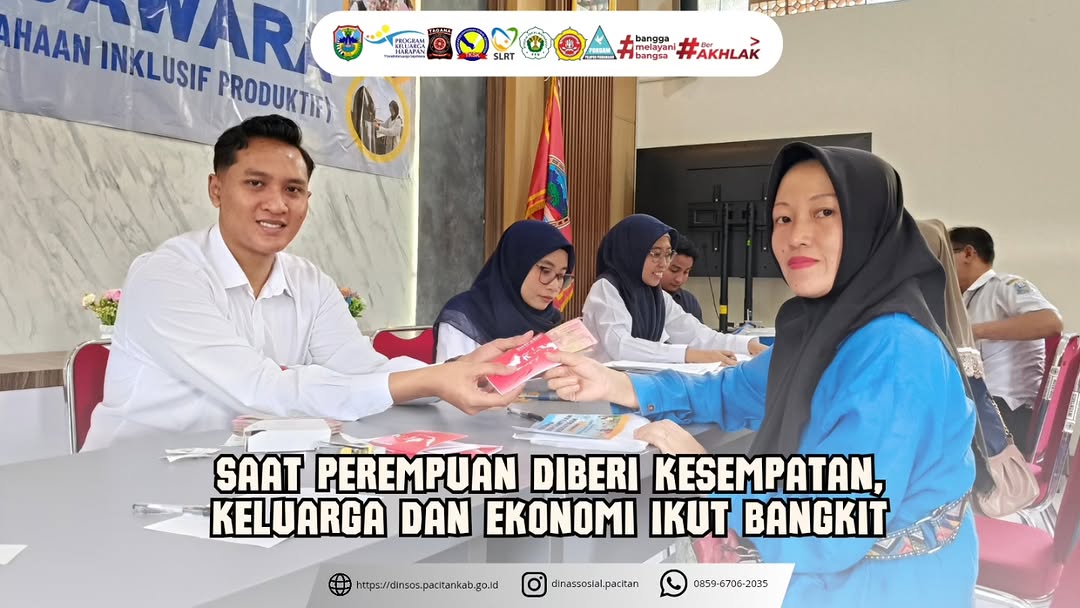 Menyasar perempuan prasejahtera yang berperan sebagai tulang punggung keluarga, Dinsos menyalurkan bantuan Bantuan Kewirausahaan Inklusif Produktif Jawa Timur Sejahtera (KIP JAWARA) kepada 97 penerima manfaat di Kecamatan Kebonagung, Kabupaten Pacitan pada hari Rabu (15/4/2026).